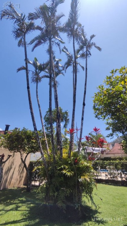 Área gramada ampla, jardim e árvores frutíferas